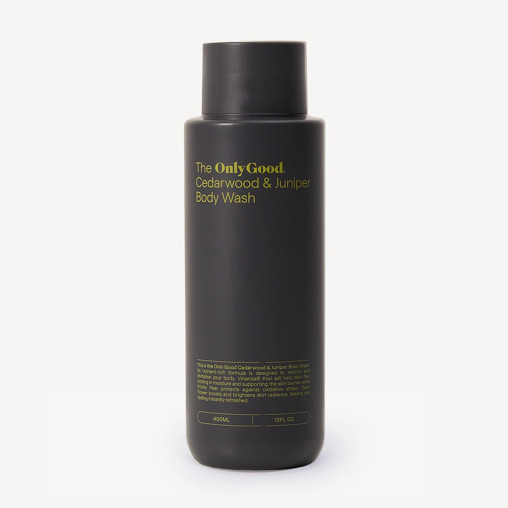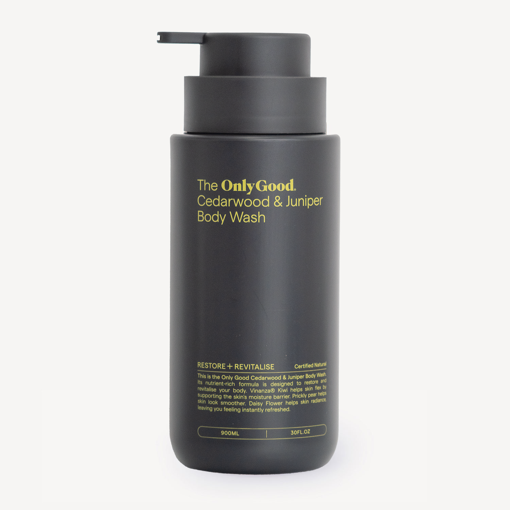 This is the Only Good Cedarwood & Juniper Body Wash. Its nutrient-rich formula is designed to restore and revitalise your body. Vinanza Kiwi will help skin flex, locking in moisture and supporting the skin barrier while Pricky Pear protects against oxidative stress. Daisy Flower boosts skin radiance and brightens skin, leaving you feeling instantly refreshed.